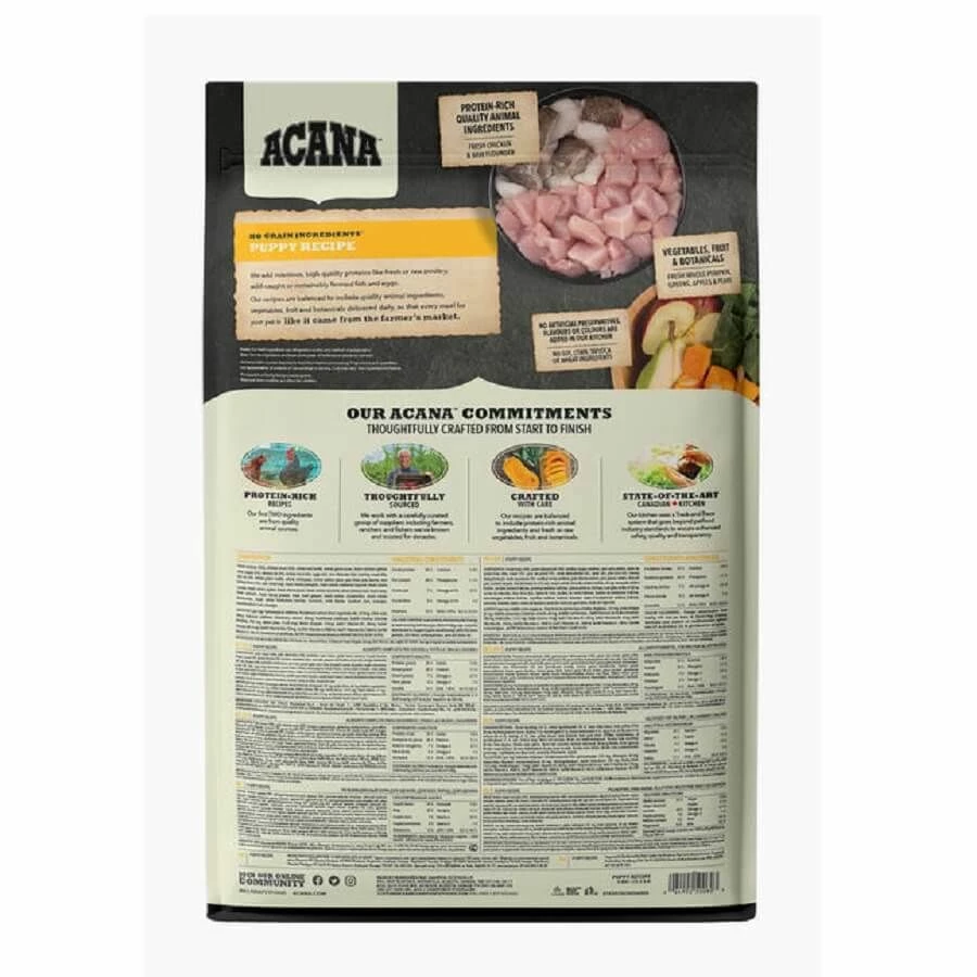Exempt de céréales et de glucides à absorption rapide, comme le riz, la tapioca et les pommes de terre, ACANA est riche est protéines animales afin de favoriser un développement et une condition physique optimaux chez votre chiot.