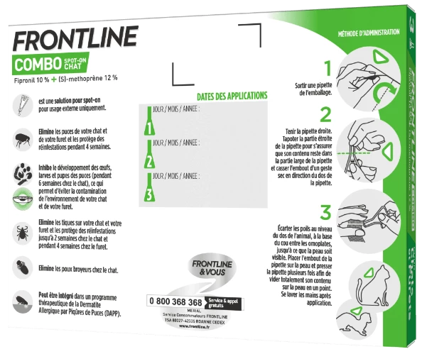 FRONTLINE Combo pour chat offre une protection anti-puces et anti-tiques complÚte pour votre chat et son environnement.