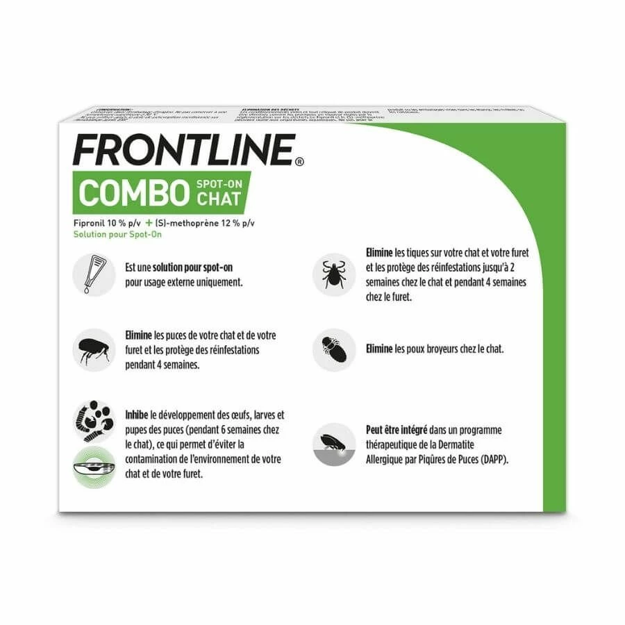 FRONTLINE Combo pour chat offre une protection anti-puces et anti-tiques complète pour votre chat et son environnement.