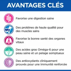 - Avec des acides gras oméga-6 pour une peau saine et un pelage somptueux