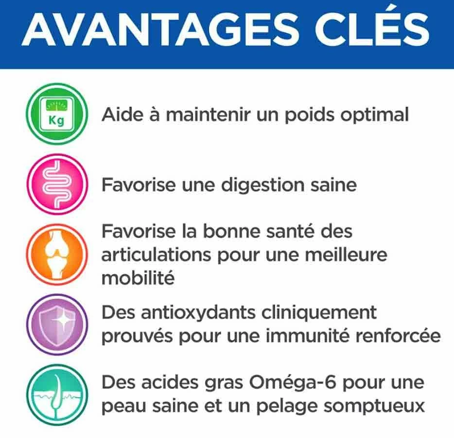 - MĂ©lange unique d’ingrĂ©dients cliniquement prouvĂ© pour favoriser la combustion des graisses et aider les chiens Ă atteindre et Ă maintenir un poids optimal