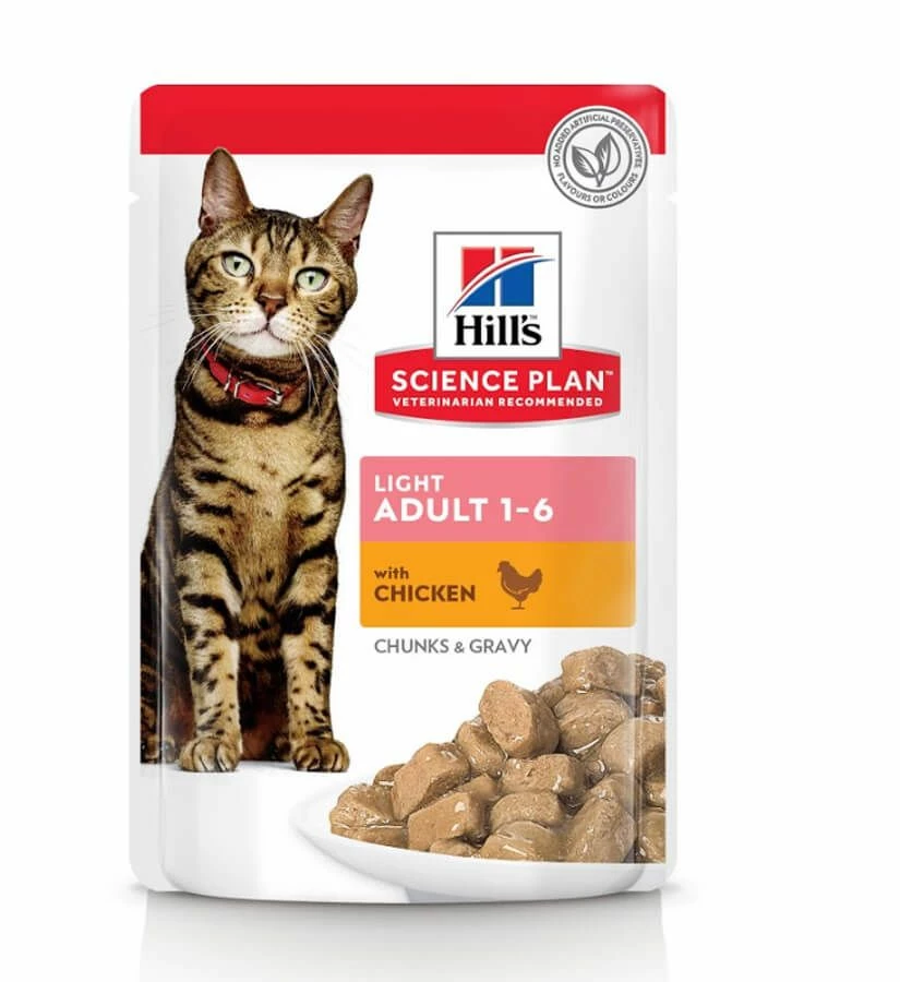 Hill’s Science Plan Feline Adult Light est une nutrition haut de gamme adaptĂ©e pour rĂ©pondre aux besoins spĂ©cifiques des chats adultes de 1 an Ă 7 ans.