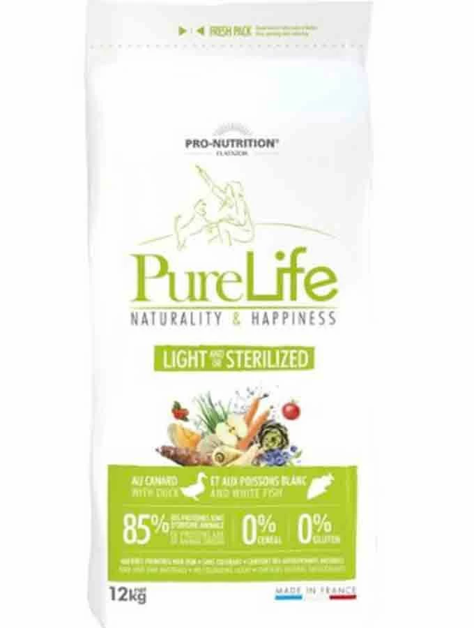 PureLife Light / Sterilized est une alimentation Ă©quilibrĂ©e et complète pour les chiens ayant tendance Ă l’embonpoint et/ou stĂ©rilisĂ©s. Convient Ă©galement aux chiens sensibles. Il s’agit d’une alimentation au canard et au poisson blanc contenant 85 % de protĂ©ines d’origine animale, c’est une recette sans cĂ©rĂ©ales et sans gluten.