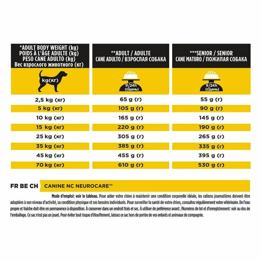 Purina Proplan PPVD Canine NeuroCare NC est un aliment complet pour chien adultes et senior pour soutenir la fonction cérébrale et réduire le déclin cognitif lié à l’âge chez le chien. Cette alimentation aux effets bénéfiques sur l’état de santé de votre animal, apportera à son cerveau, une source d’énergie différente (régime cétogène avec les AGCM ou acides gras à chaînes moyenne) quiaidera à soutenir la fonction cognitive chez le chien senior et aidera à améliorer le fonctionnement cérébral (nutriments neuroprotecteurs)