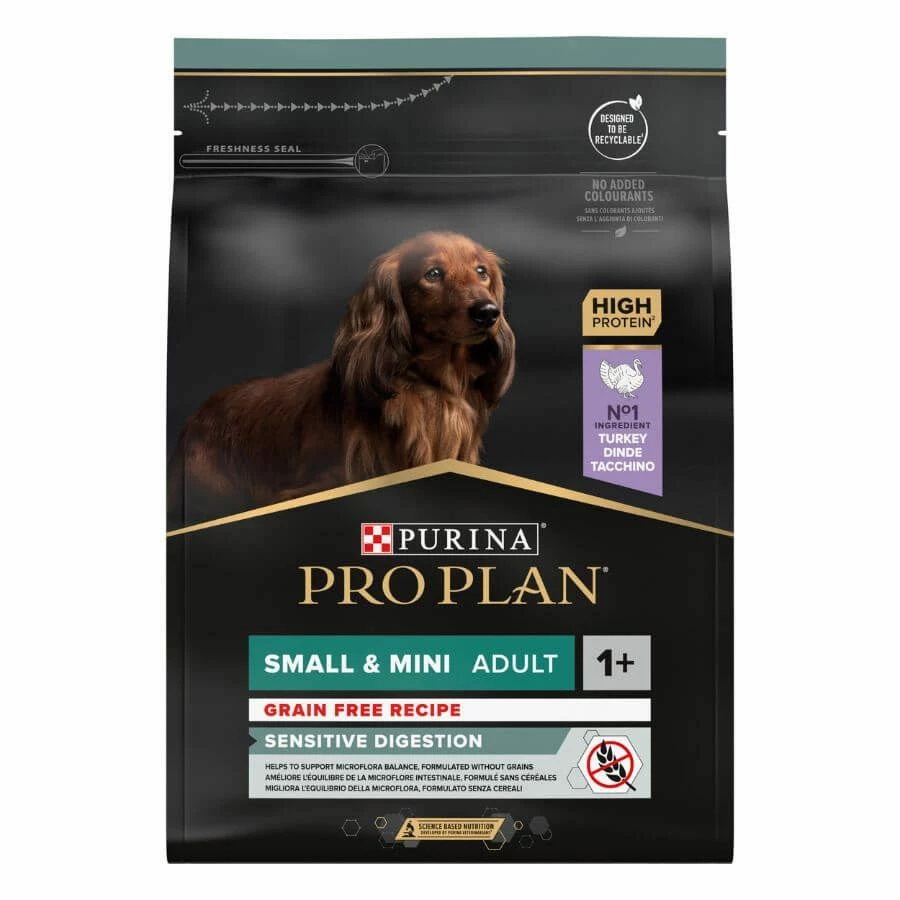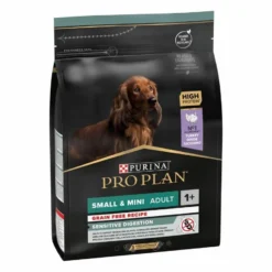 Purina ProPlan Chien Small & Mini Adult OPTIDIGEST Grain Free Dinde est un aliment complet sans céréales pour chiens adultes de petite taille.
