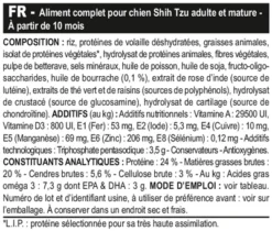 Royal Canin Shih Tzu Adult est un aliment complet spécialement destiné aux chiens de race Shih Tzu adultes et matures à partir de 10 mois. Ces croquettes sont spécialement formulées pour les mâchoires brachycéphales.