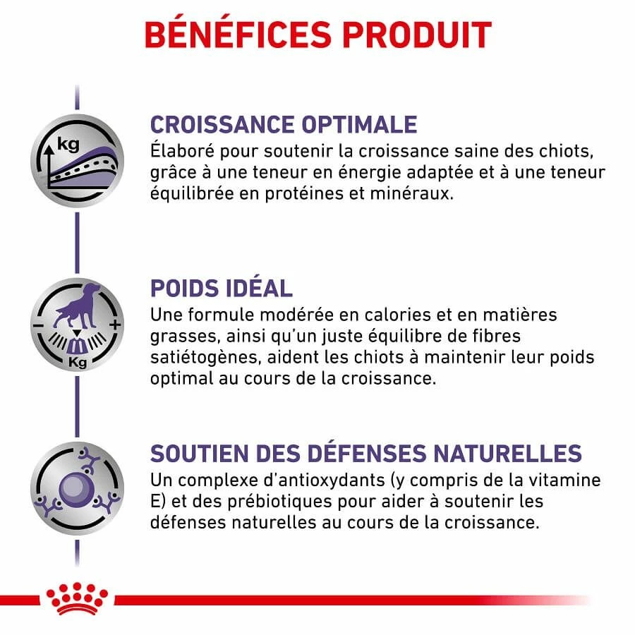 Pour votre chiot de moyenne race, l’alimentation de chez Royal Canin sera idĂ©ale.