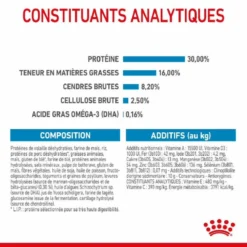 Cette alimentation est source d’acides gras Oméga-3 (dont le DHA) qui contribue au bon développement cérébral ainsi que la santé visuelle des chiots.