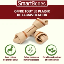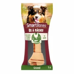 Les os à mâcher au poulet de chez SmartBones sont des friandises au goût irrésistible, à base de savoureux poulet et sans peau d’origine animale. Leur taille généreuse est particulièrement adaptée aux chiens de grande taille.