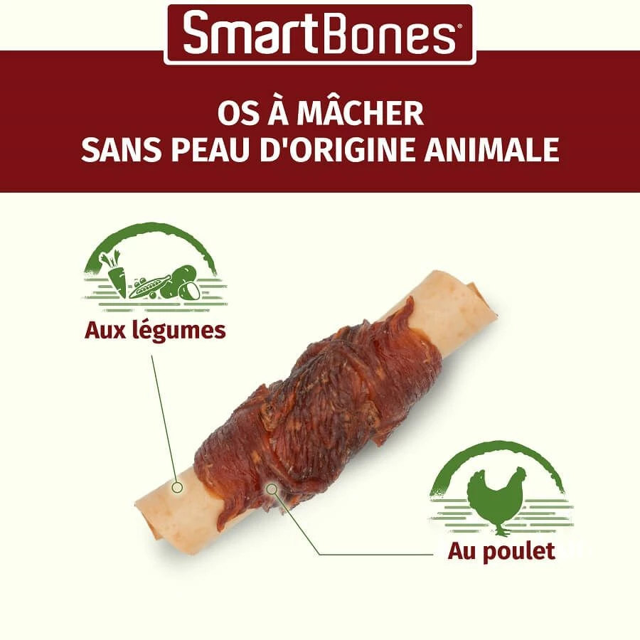 Les Sticks Mini Wrap de chez SmartBones sont des bâtonnets Ă mâcher au goĂ»t irrĂ©sistible constituĂ©s de poulet, sans peau d’origine animale et enrobĂ©s de poulet croustillant pour un vĂ©ritable plaisir de mastication.