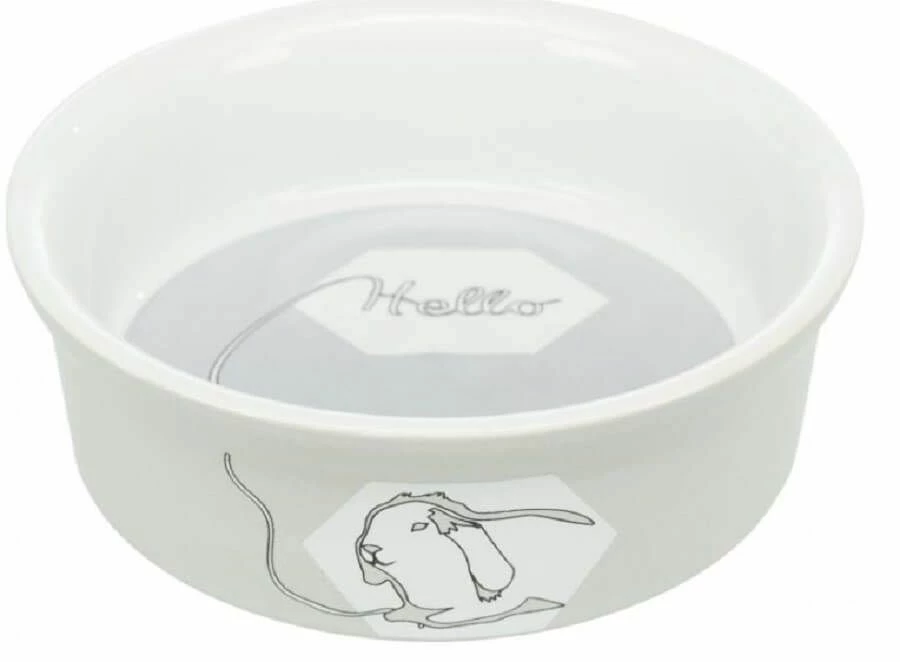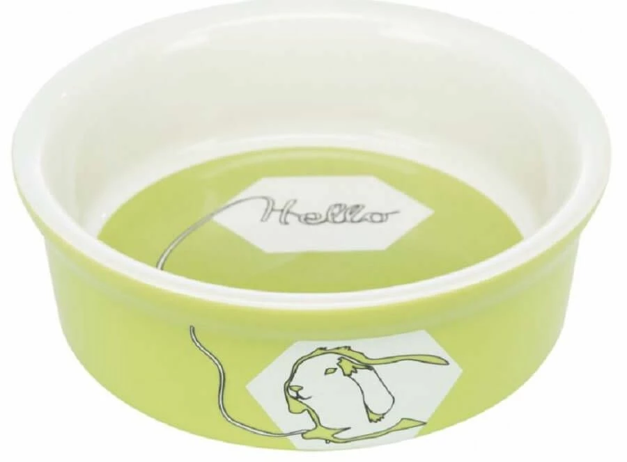 Offrez à votre lapin une gamelle en céramique pratique et originale floquée « Hello ». Votre petit animal appréciera sûrement ses couleurs vives !
